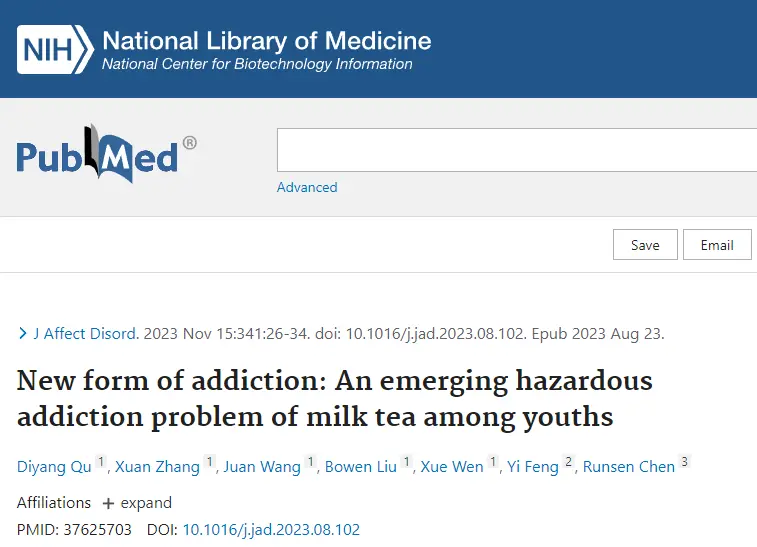 喝奶茶的危害:易导致上瘾、抑郁症、甚至自杀(清华大学、美国医学图书馆论文)